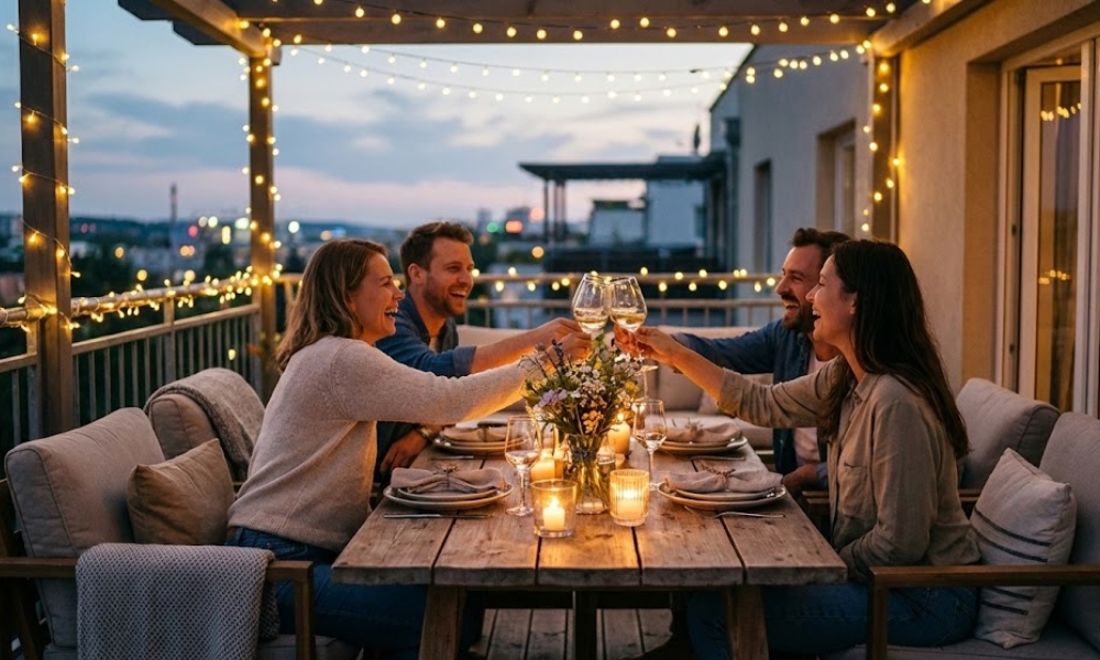 Večera na terasi je pogodna za manji broj gostiju i mirnije proslave. Ova ideja zahteva najmanje prostora i može se organizovati čak i na većem balkonu.